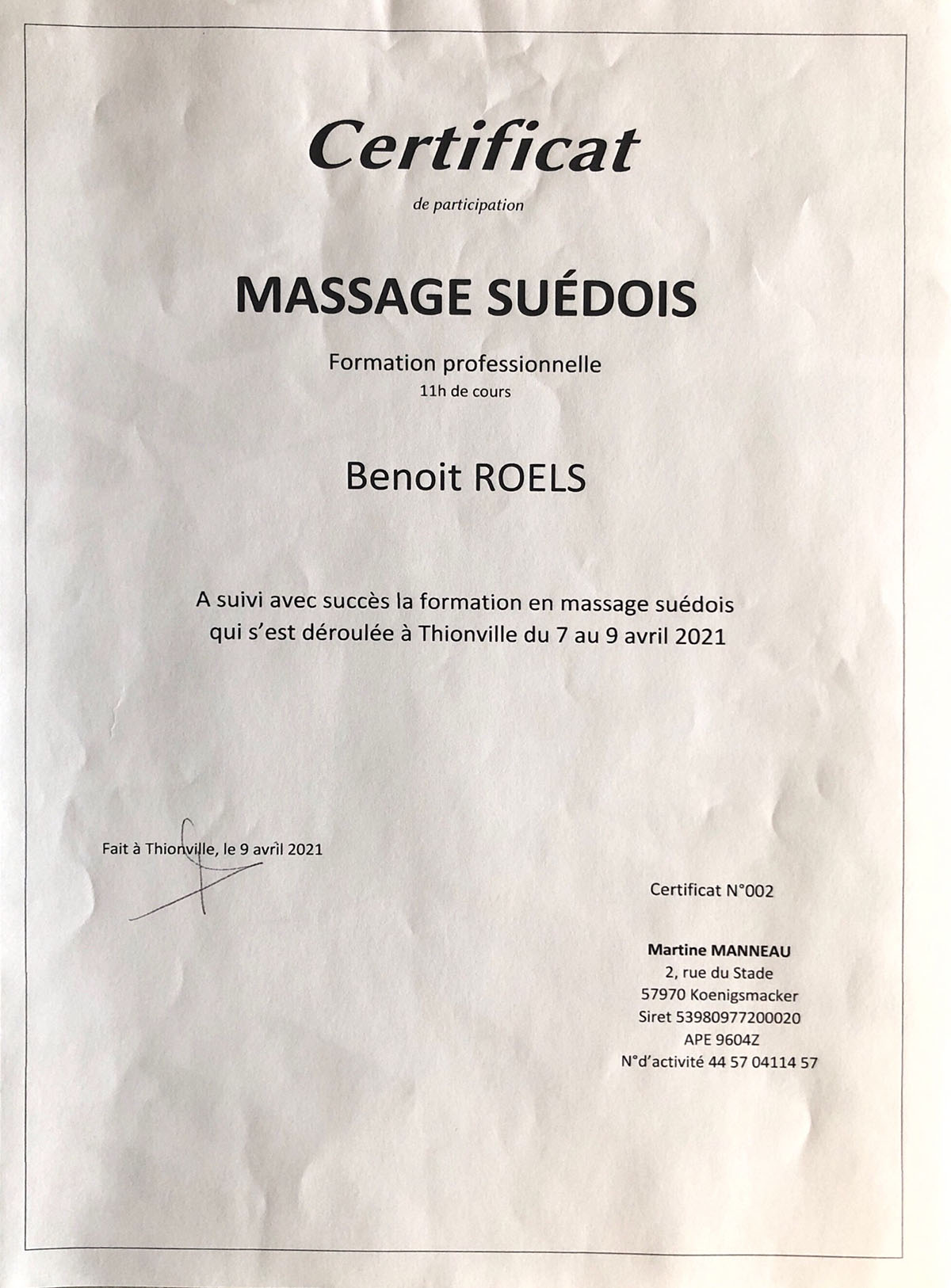 Nos certifications massages