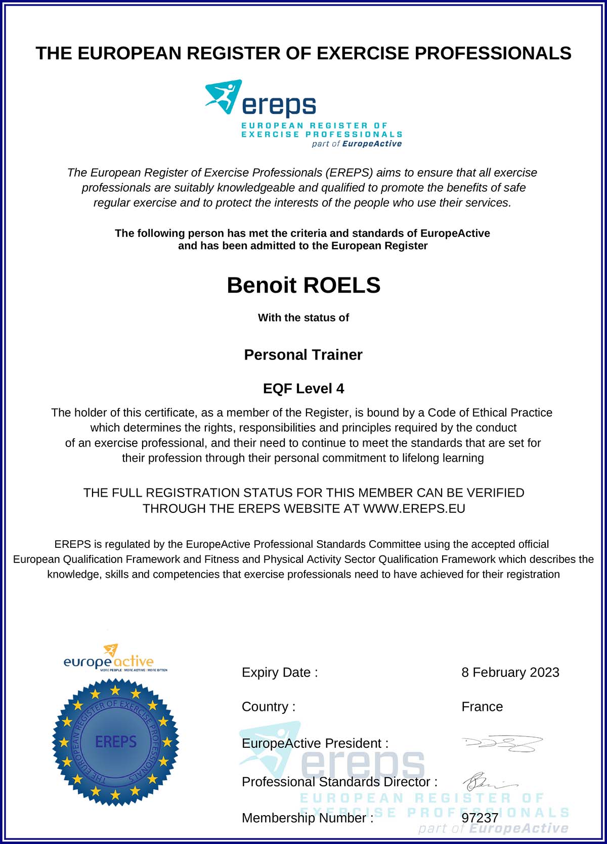 EREPS - Personal Trainer - EQF Level 4